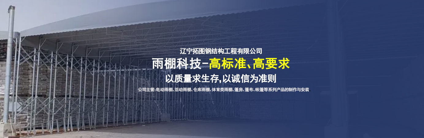 遼寧拓圖鋼結(jié)構(gòu)工程有限公司是一家專業(yè)從事推拉篷設(shè)計、制作、安裝、使用、維修的綜合性公司。公司主營:電動雨棚、活動雨棚、倉庫雨棚、體育類雨棚、篷房、篷布、帳篷等系列產(chǎn)品的制作與安裝?! ?nbsp; 遼寧拓圖鋼結(jié)構(gòu)工程有限公司堅持以市場為導(dǎo)向,以科技創(chuàng)新為動力,以質(zhì)量求生存,以誠信為準(zhǔn)則,倡導(dǎo)求實、進(jìn)取、創(chuàng)新的企業(yè)精神?!翱茖W(xué)的管理、嚴(yán)謹(jǐn)?shù)脑O(shè)計、 的制作安裝、嚴(yán)格的質(zhì)量檢測、良好的后期服務(wù)成就企業(yè)的信譽(yù),為您提供優(yōu)質(zhì)服務(wù)。 遼寧拓圖鋼結(jié)構(gòu)工程有限公司傾力于開發(fā)應(yīng)用三維空間結(jié)構(gòu)與新材料的結(jié)合,將廣告藝術(shù)視覺表現(xiàn)形式與張力膜材科學(xué)的結(jié)合,推出多彩推拉蓬,依靠先進(jìn)的科學(xué)技術(shù),將推拉蓬建筑表現(xiàn)形式無限延伸,立志走在建筑科學(xué)的前沿,引導(dǎo)建筑時尚潮流,我們的目標(biāo)是使推拉蓬建筑在中國發(fā)展壯大?! ?nbsp; 遼寧拓圖鋼結(jié)構(gòu)工程有限公司憑著極強(qiáng)的事業(yè)熱情和豐富的專業(yè)經(jīng)驗以“勤勉進(jìn)取、銳意創(chuàng)新、至誠至信”的精神使公司得到迅速健康發(fā)展,業(yè)務(wù)范圍遍及全國。科學(xué)的管理、嚴(yán)謹(jǐn)?shù)脑O(shè)計、高標(biāo)準(zhǔn)的制作安裝流程,嚴(yán)格把控產(chǎn)品質(zhì)量,熱誠的售后服務(wù)是企業(yè)競爭力的源泉?! ?nbsp; 遼寧拓圖鋼結(jié)構(gòu)工程有限公司人愿以最誠摯的態(tài)度,歡迎廣大客戶的蒞臨與溝通!愿為市場提供優(yōu)...